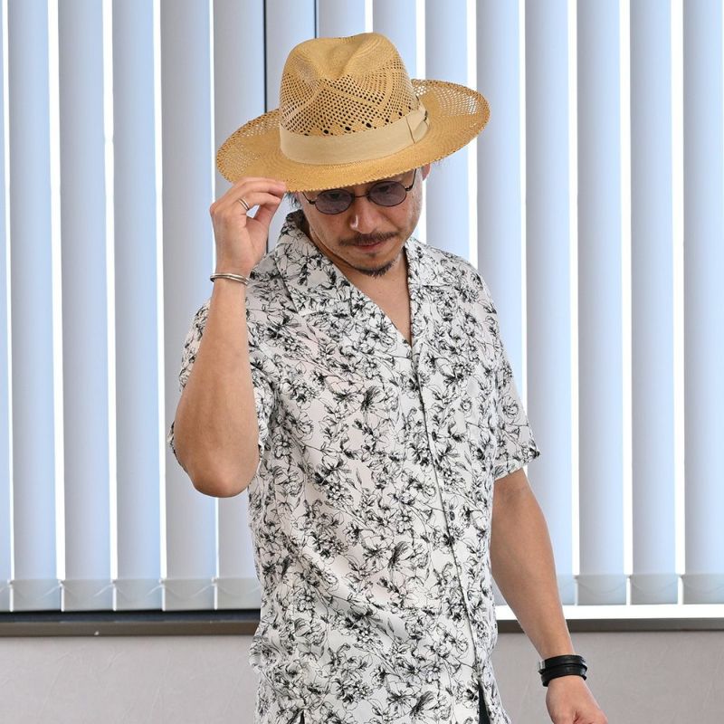 長めのブリムは、ほぼフラットに近いオールアップといったシルエットです。全体にあしらわれた飾り編み(透かし編み)も相まって、全体に優雅な雰囲気があるので、男性の方のみならず女性の方にもおすすめします。