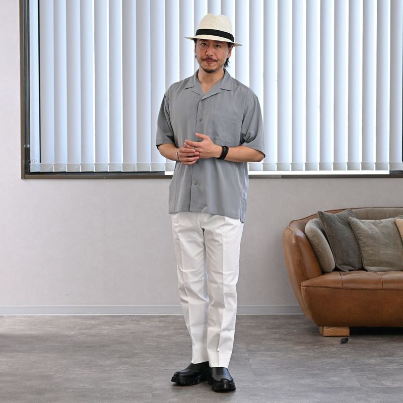 本パナマ帽ですが、どこか懐かしいような印象があるのがこの帽子の特徴です。かぎ針編みの帽体が、いわゆる麦わら帽子にも近い雰囲気であることがその理由。そのため麦わら帽子のような感覚で、Tシャツやポロシャツなどラフな服装に合わせるのも楽しいでしょう。