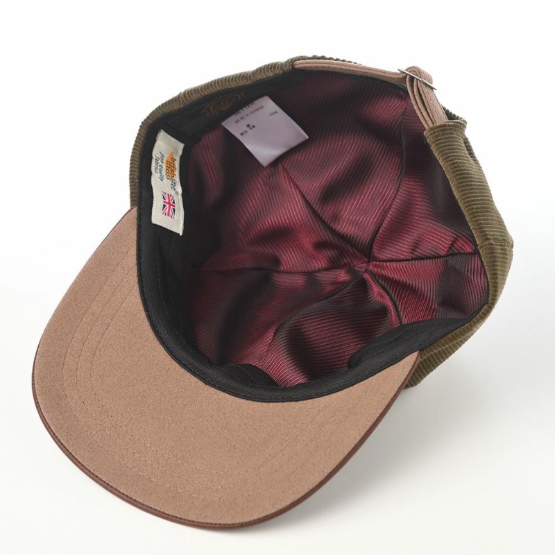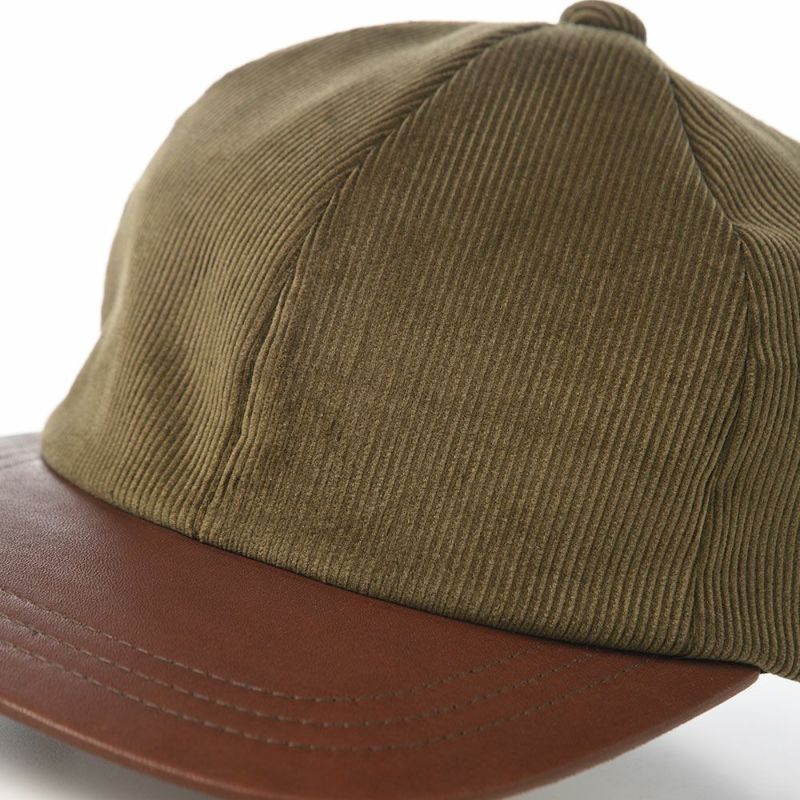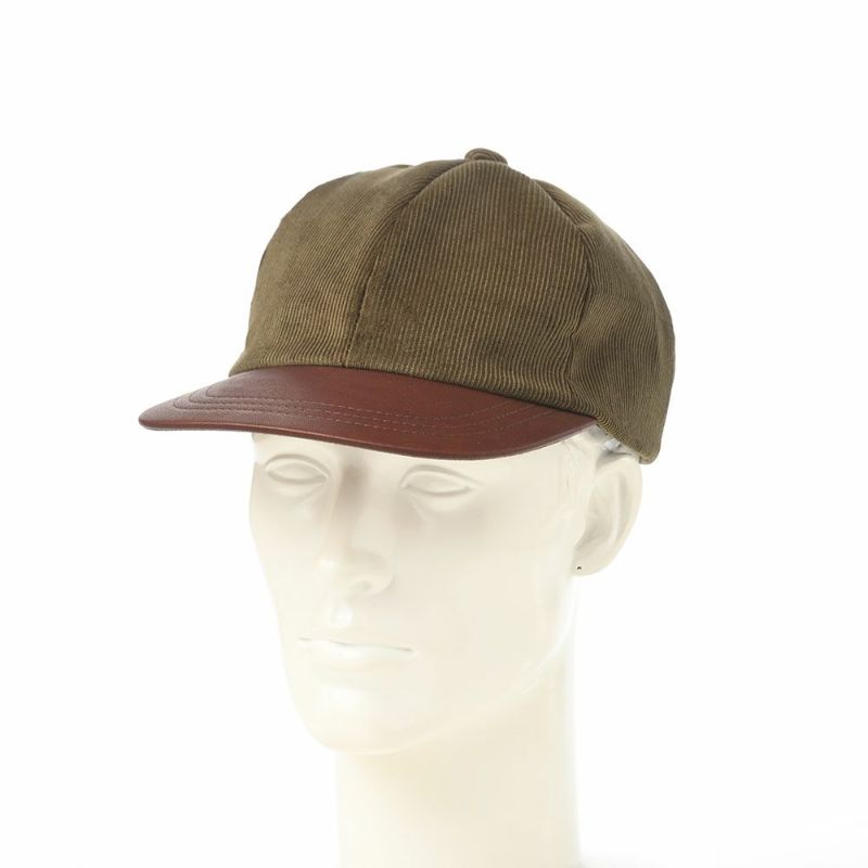 クラウンの、細めの畝が美しいコーデュロイは、英国の老舗ブリスベンモス社製。つば上に牛革を用いた上品キャップ。