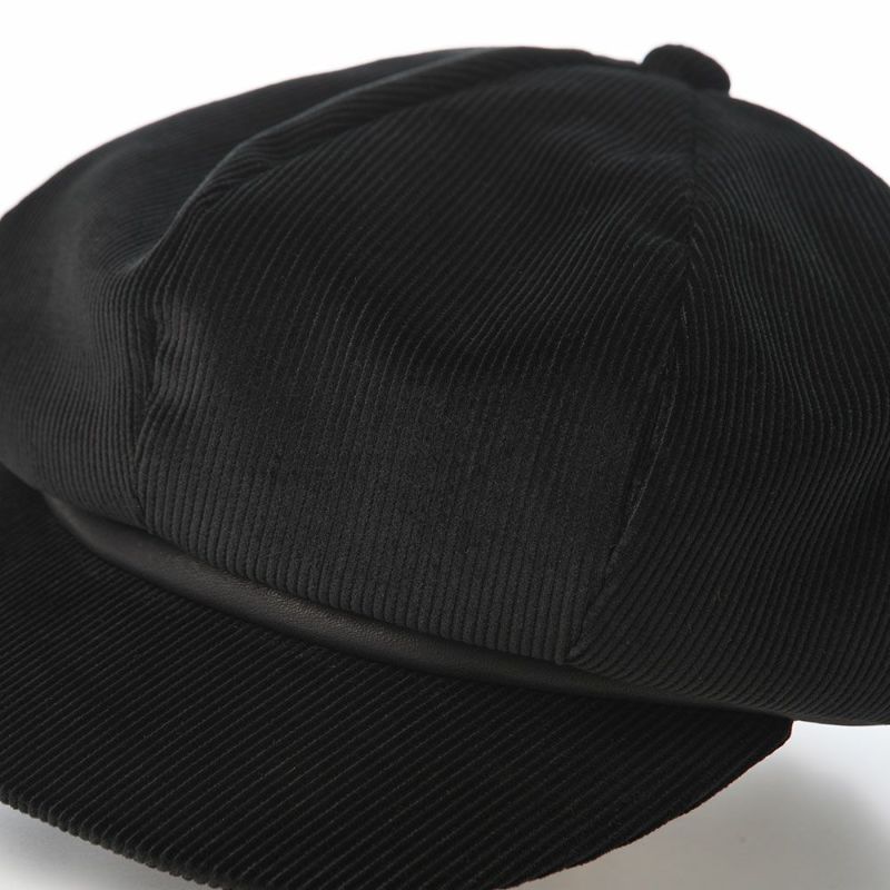 帽体の、細めの畝が美しいコーデュロイは、英国の老舗ブリスベンモス社製。腰にアクセントとなる牛革をあしらった、ボリュームのあるクラウンが魅力の上品キャスケット。