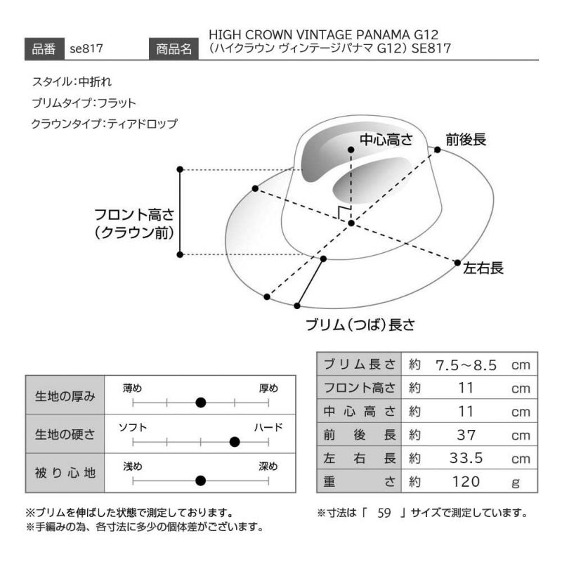 HIGH CROWN VINTAGE PANAMA G12(ハイクラウン ヴィンテージパナマ G12) SE817 キャメル
