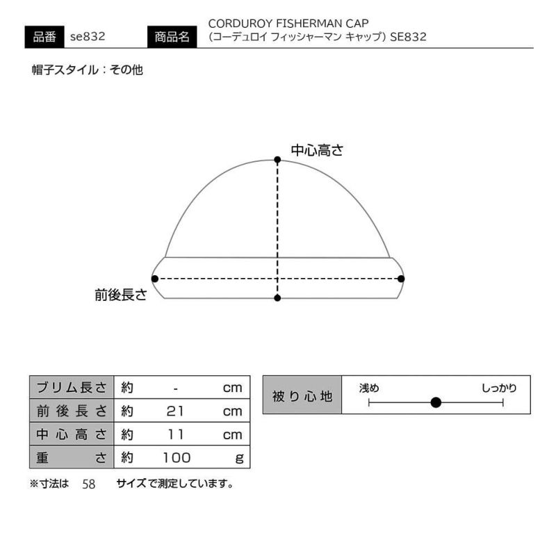CORDUROY FISHERMAN CAP(コーデュロイ フィッシャーマン キャップ) SE832 カーキ