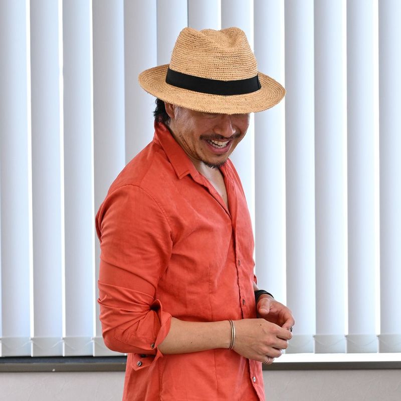 ビジネスシーンで、冬はフェルト、夏はパナマを着用されていたあなたに、夏のオフを楽しむハットとして、こちらの帽子を提案します。マニッシュハットの上品なシルエットはそのままに、天然ラフィアのかぎ針編みで、涼しげな雰囲気に仕上げました。