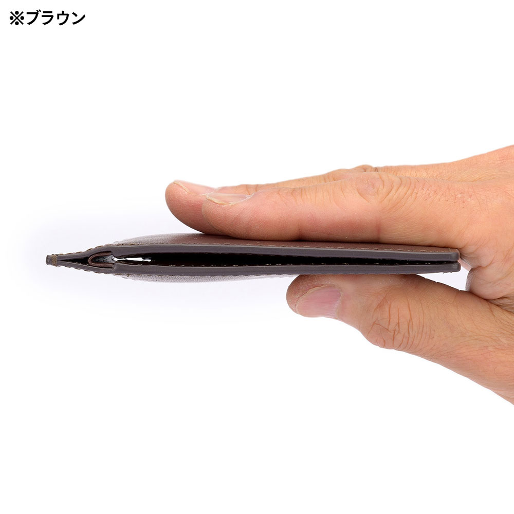 薄さ・強さ・使いやすさにこだわってデザインした、スマートながら小銭入れも付いた二つ折り財布です。キャッシュレス派の方だけでなく、小銭入れがないと少し不安という方にもおすすめの薄財布になっています。