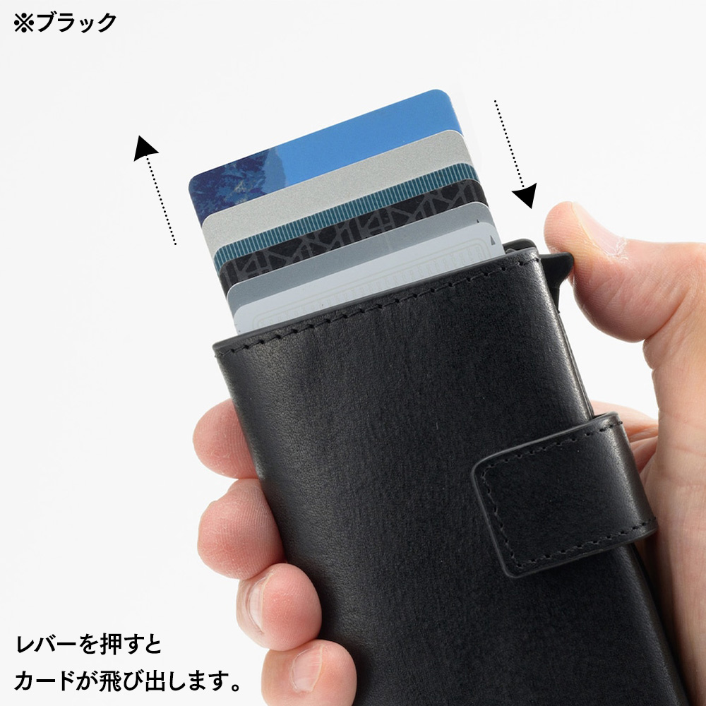 レバーを押すだけでカードを瞬時に取り出せるので、大切なカードを落とす心配がなく、安心して使えます。誰でも簡単に使える快適さが魅力です。
