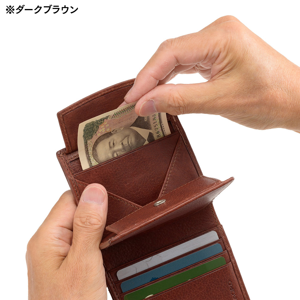 ミラグロ 二つ折り財布 牛革ソフトミリング マネースルーウォレット SL-M-1473 ダークブラウン|帽子通販 時谷堂百貨【公式】