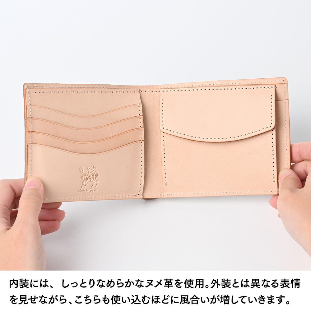 内装には、しっとりなめらかなヌメ革を使用。外装とは異なる表情を見せながら、こちらも使い込むほどに風合いが増していきます。