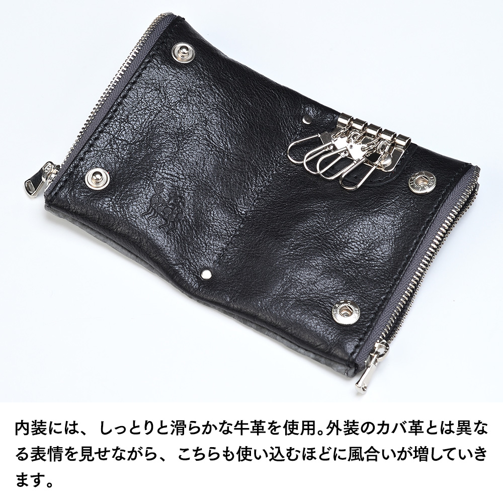 ■希少素材・カバ革を贅沢に使った、実用派コンパクトキーケース