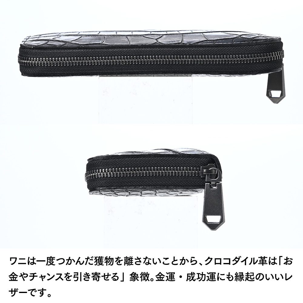 クロコダイル ラウンドファスナー 長財布 ブラック