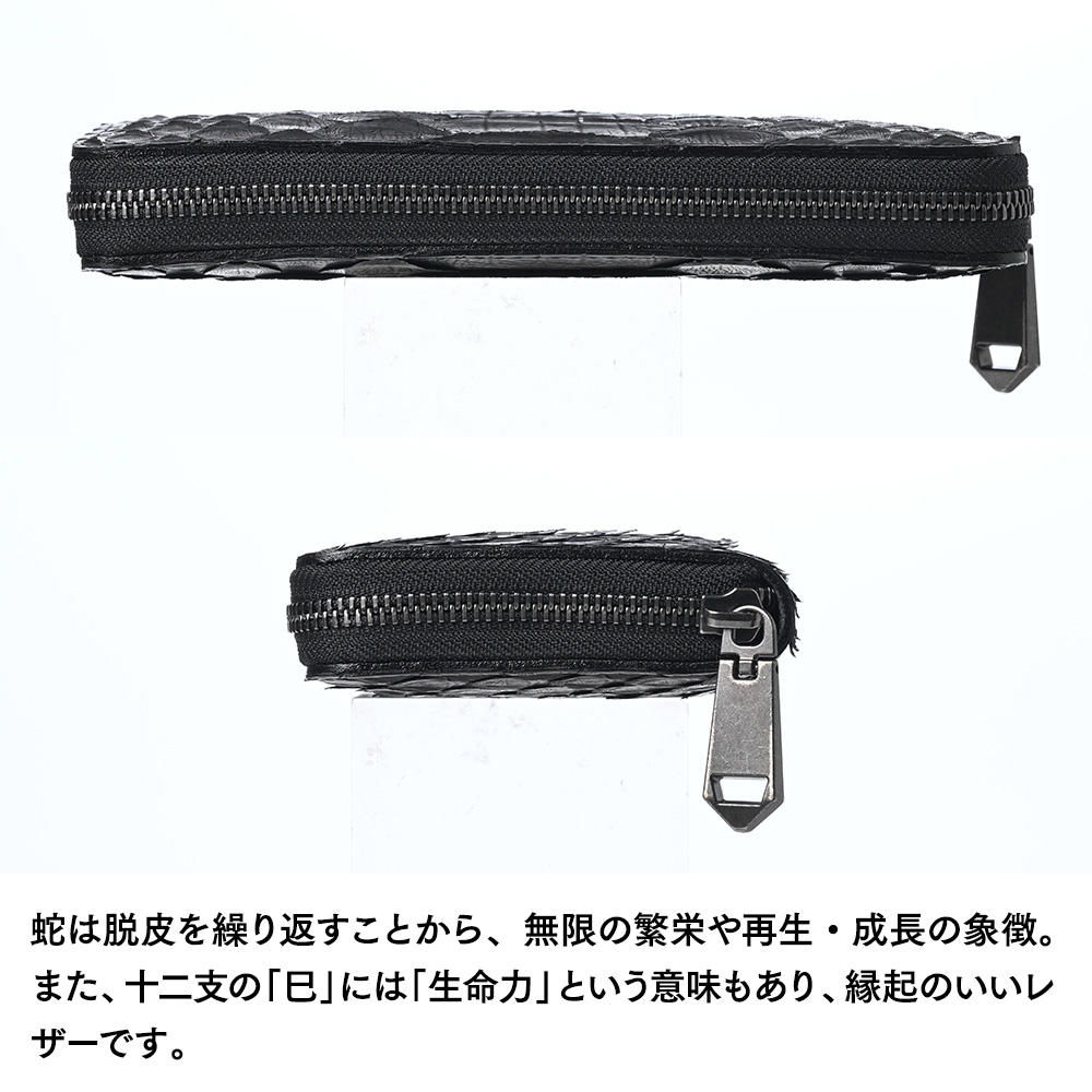 ズー 長財布 6mUPパイソン ラウンドファスナー 長財布 ブラック|帽子通販 時谷堂百貨【公式】