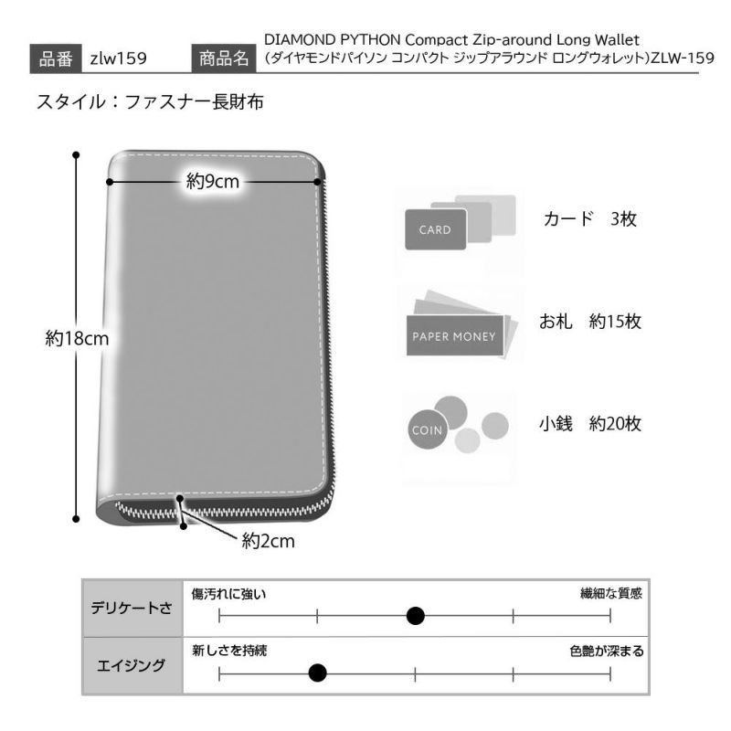 ズー 長財布 DIAMOND PYTHON Compact Zip-around Long Wallet(ダイヤモンドパイソン コンパクト ジップアラウンド ロングウォレット) ZLW-159 アンティークシルバー|帽子通販 時谷堂百貨【公式】