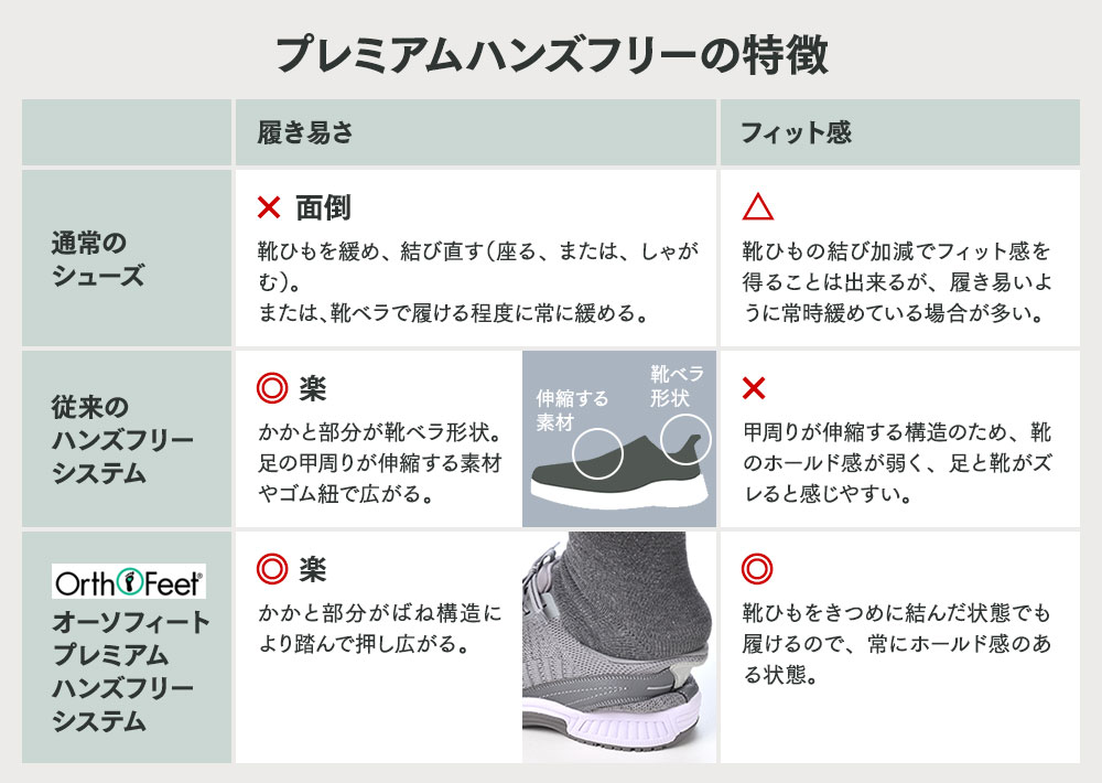 「プレミアムハンズフリーシステム」―― 履く瞬間から快適に