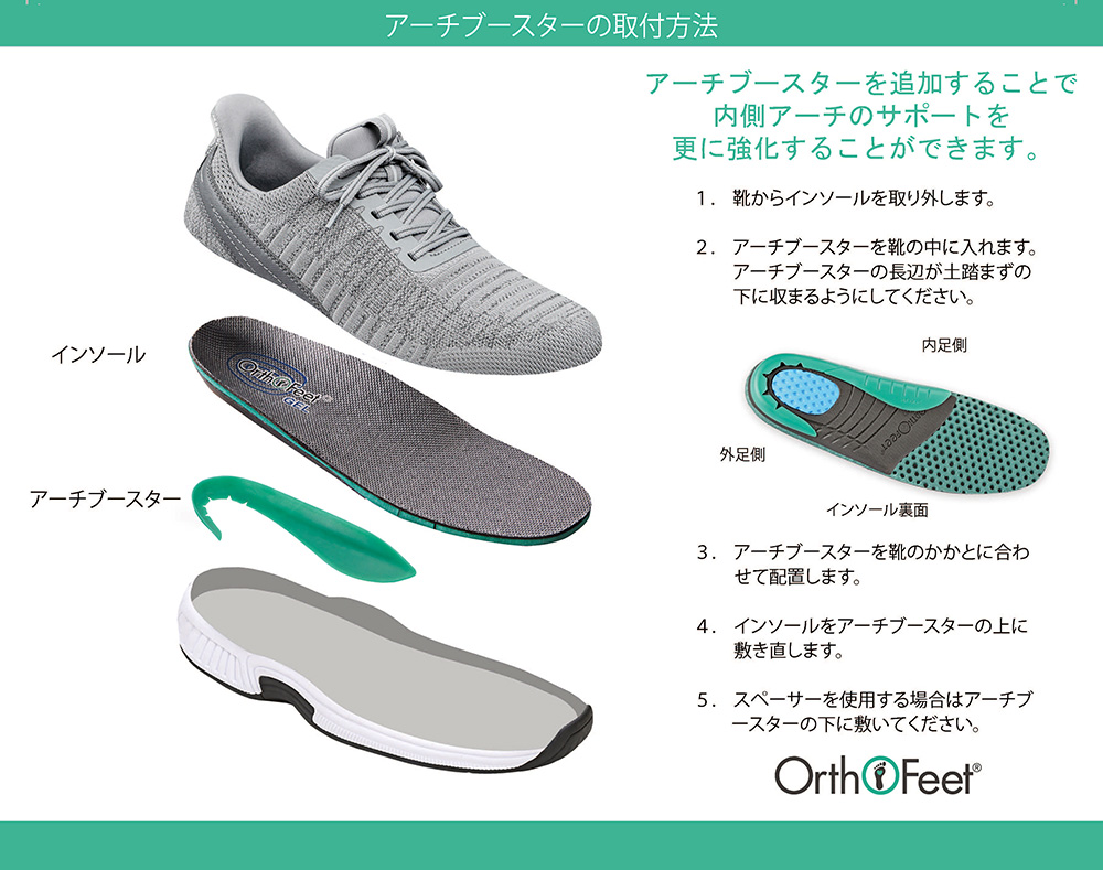 アーチブースターを使用することで土踏まずのサポートを強化することができます。