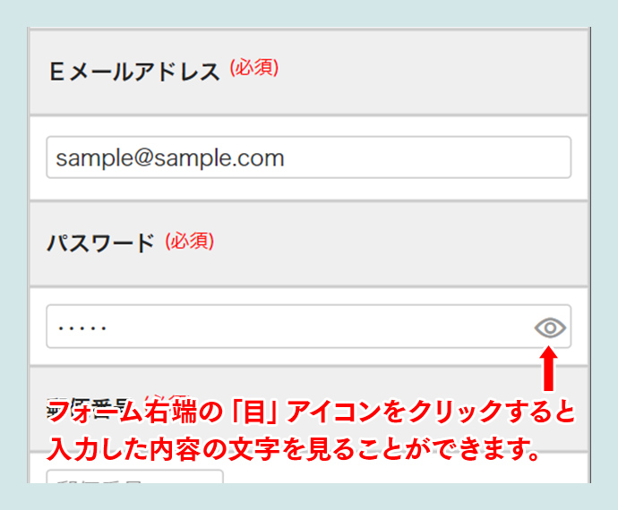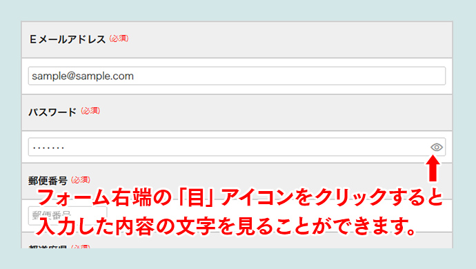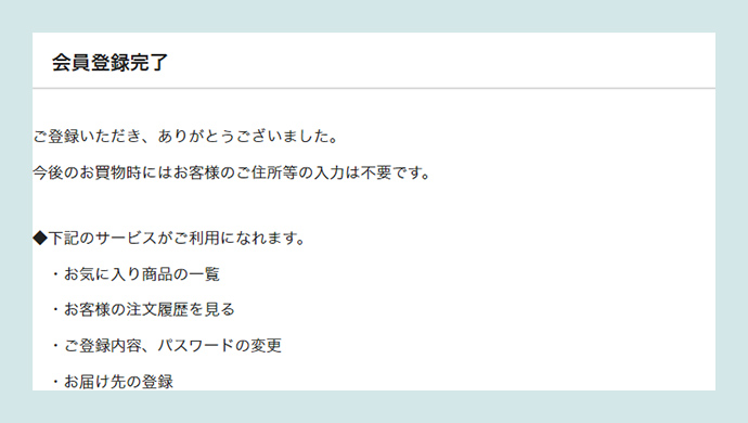 ※Eメールアドレスとパスワードは、今後の会員ログイン時に必要となりますので、忘れないようお控えください。