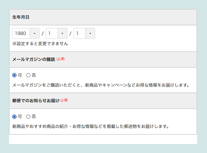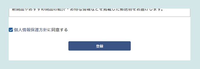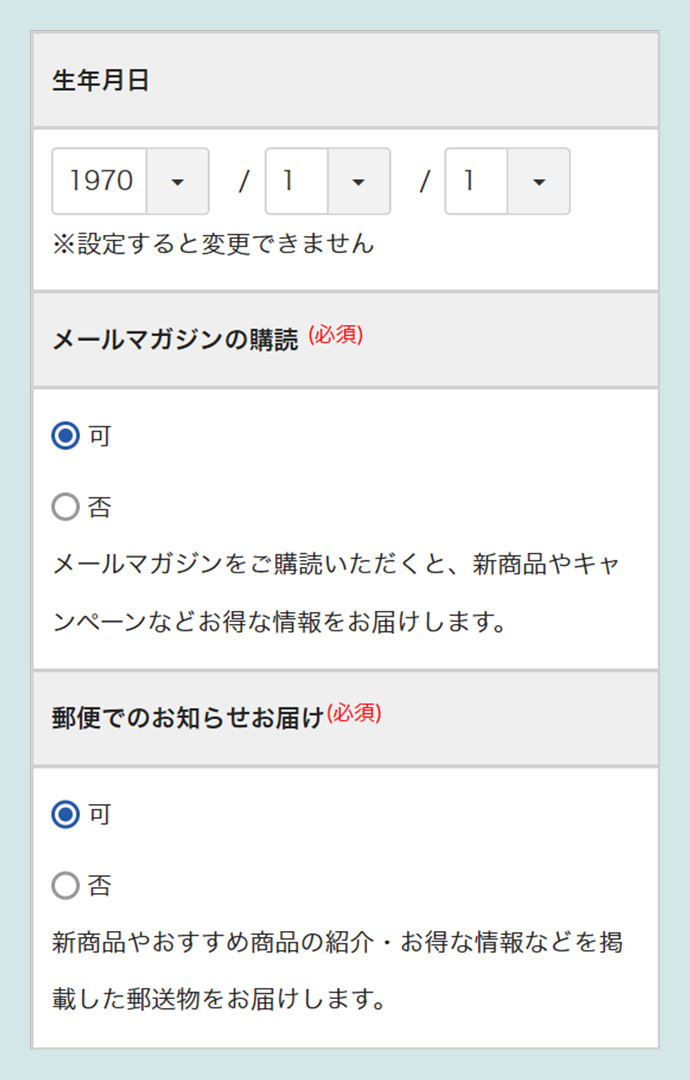 その後、「メールマガジンの登録」「郵便でのお知らせお届け」の可否を選択します。