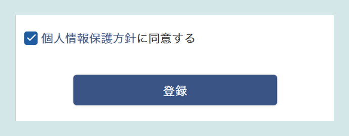 個人情報保護方針をクリックして内容をご確認いただき、「個人情報保護方針に同意する」をチェックします。