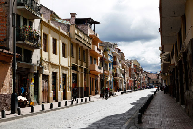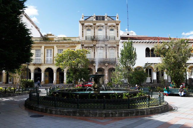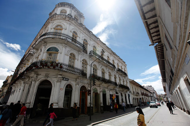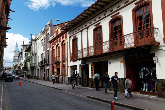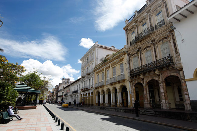 エクアドルとスペインの文化が混じり合う美しい街の風景。