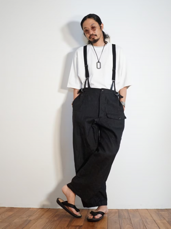 サスペンダーはシャツやスラックスだけでなく、Tシャツやワイドパンツとも相性のいい万能アイテムです。