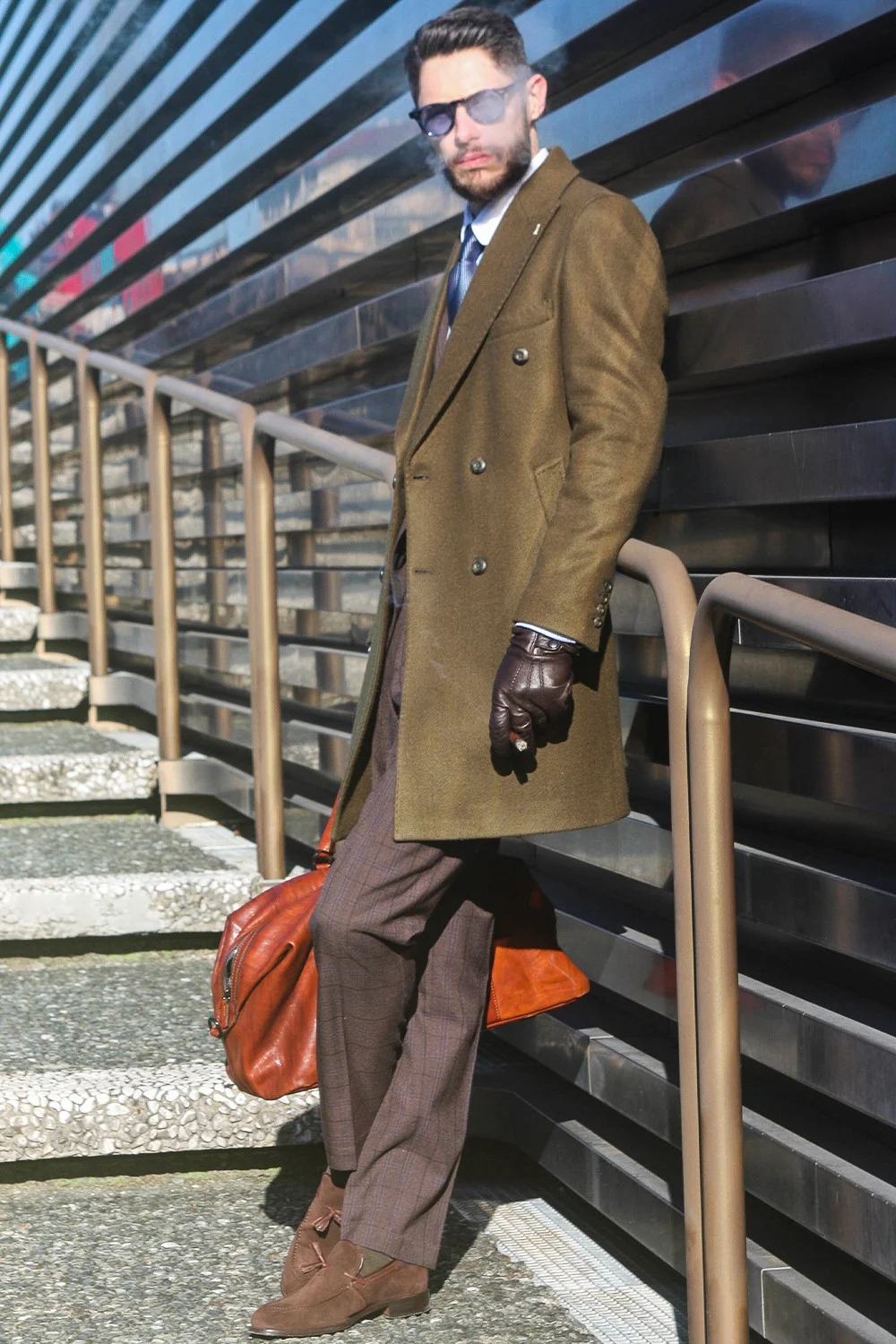 - コーディネートにメリハリを与えている「手袋と革靴」