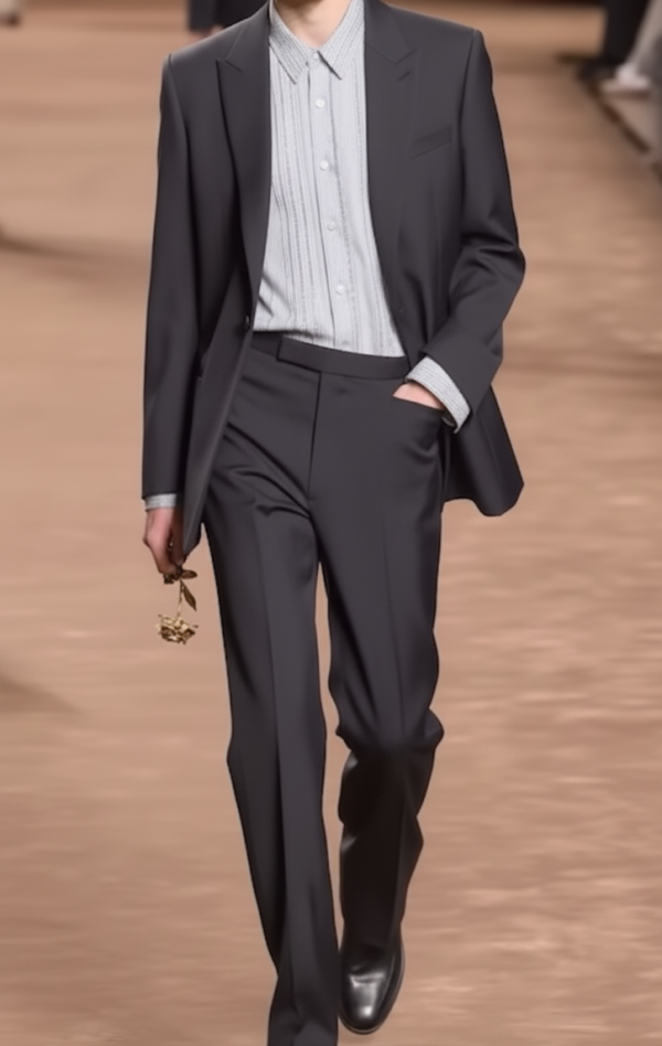 スーツのようにピタッとしたスラックスは、年齢とともに無理が出やすく、パーティーシーンでは固い印象に見えてしまいます。