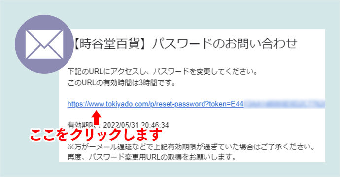 メールを開封し、メール本文中に記載されている、パスワード変更用ページのURLアドレスをクリックしてください。