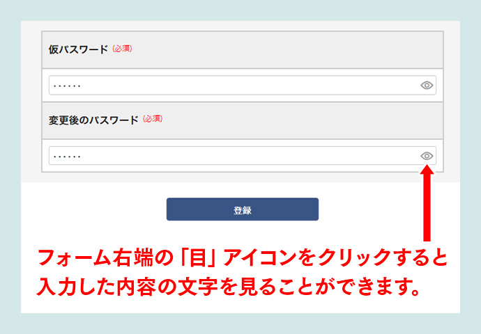 ※仮パスワードは、一時的に使用するものです。ここでは自由に仮パスワードを入力してください。(半角英数の文字)